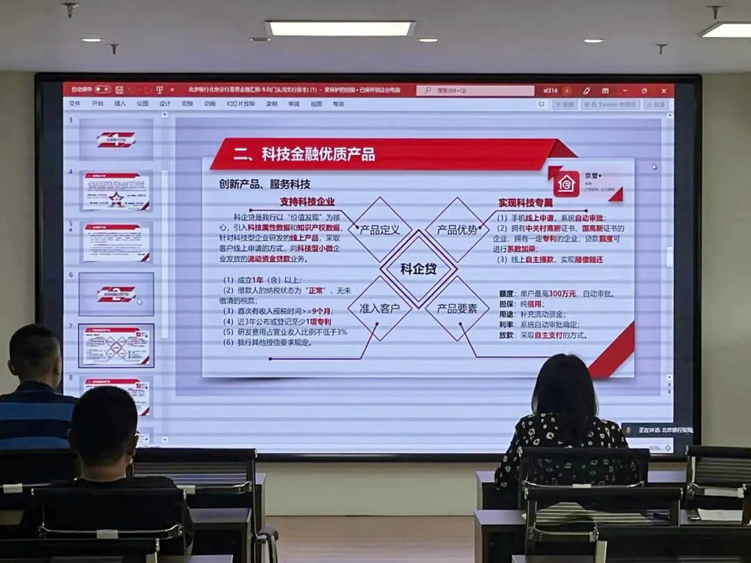 會上北京銀行北京分行普惠金融部張琦老師介紹了關(guān)于支持科技企業(yè)的“科企貸”、“銀稅貸”、“創(chuàng)業(yè)擔(dān)保貸”、“融信寶”等融資政策,最高授信1億元,為企業(yè)的發(fā)展保駕護(hù)航。