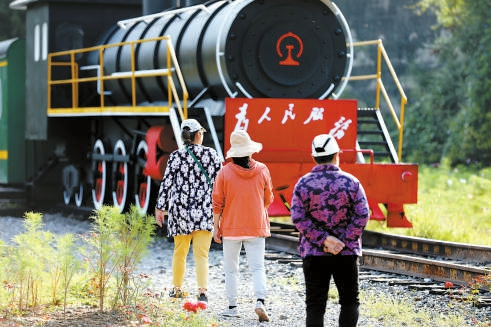 導(dǎo)覽過程中,他特意在山間的八路軍雕像處多停留了一會兒,為游客講述著這里的紅色文化。在邢衛(wèi)兵的帶領(lǐng)下,游客們走過虛擬的“戰(zhàn)場”“防空洞”,來到了紅色文化紀(jì)念館。看著展板、實物和雕塑,不少游客的神情變得肅穆起來。一旁的邢衛(wèi)兵看在眼里,喜在心頭,挖掘紅色文化這步棋,炭廠村又走對了。